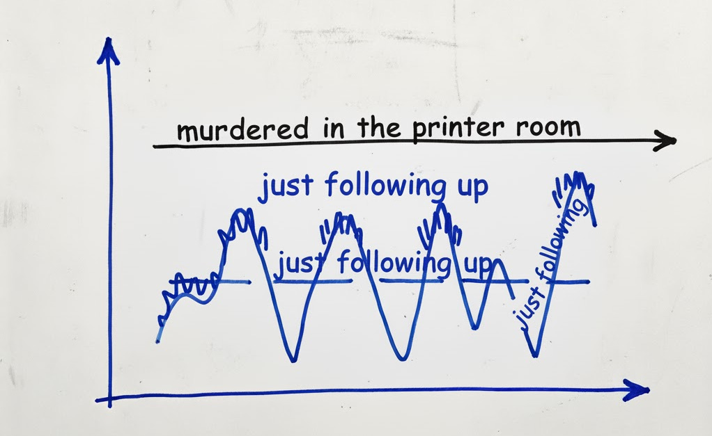 The low level agony fun of project management is trying to identify where that FUD is, and reduce it, doing this as aggressively as possible, but not so aggressive you’re killed in a fake office accident.